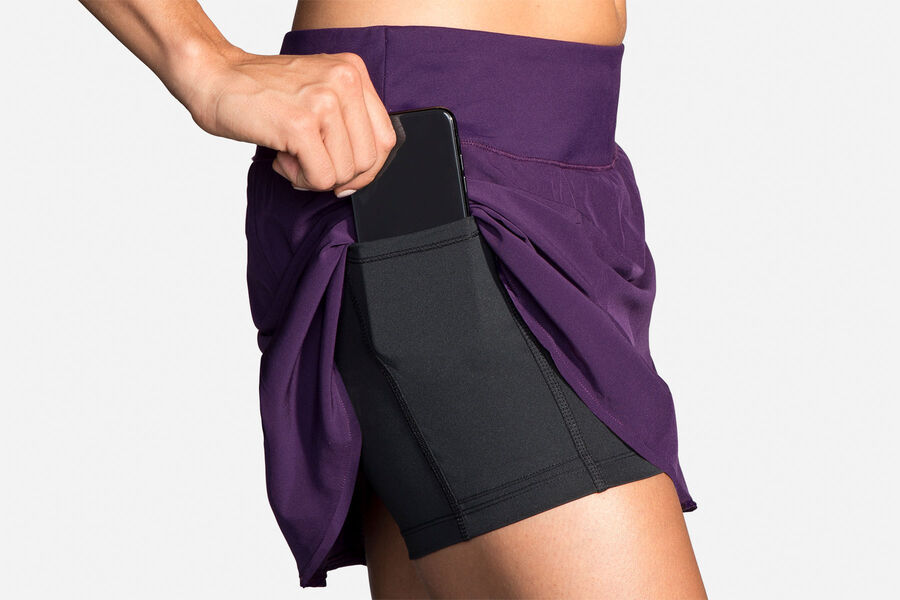 The Brooks Chaser Skort has a design that makes is easy to feel comfortable in both on and off the trail. With a wide waistband, pleated skirt and snug inner short it stays in place when you move around while offering up a flattering fit. The Chaser skort has two pockets — a pouch in the waistband and a cell-phone-sized pocket on the right thigh of the inner shorts. This gives you space to stash a quick snack, keys and/or your cell-phone.